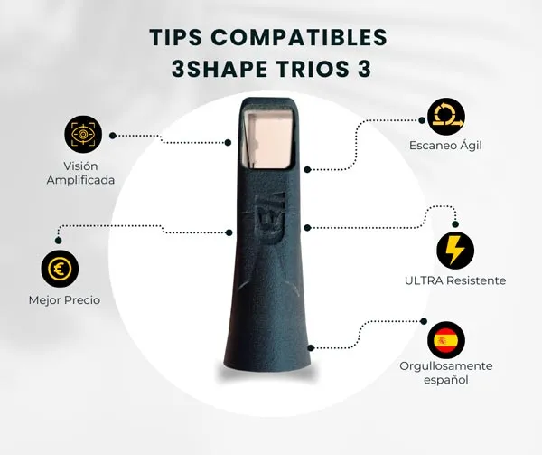 Las Puntas de Escaneado para el escáner 3Shape Tríos 3, son compatibles con los Modelos S1AP, S2AP.